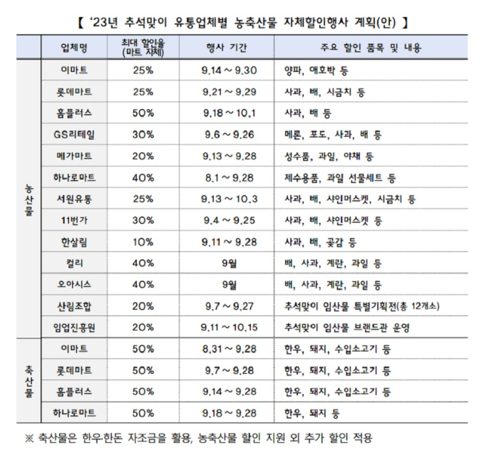 할인행사 기간: 8월 31일~9월 28일(추석 전날, 목요일)까지
